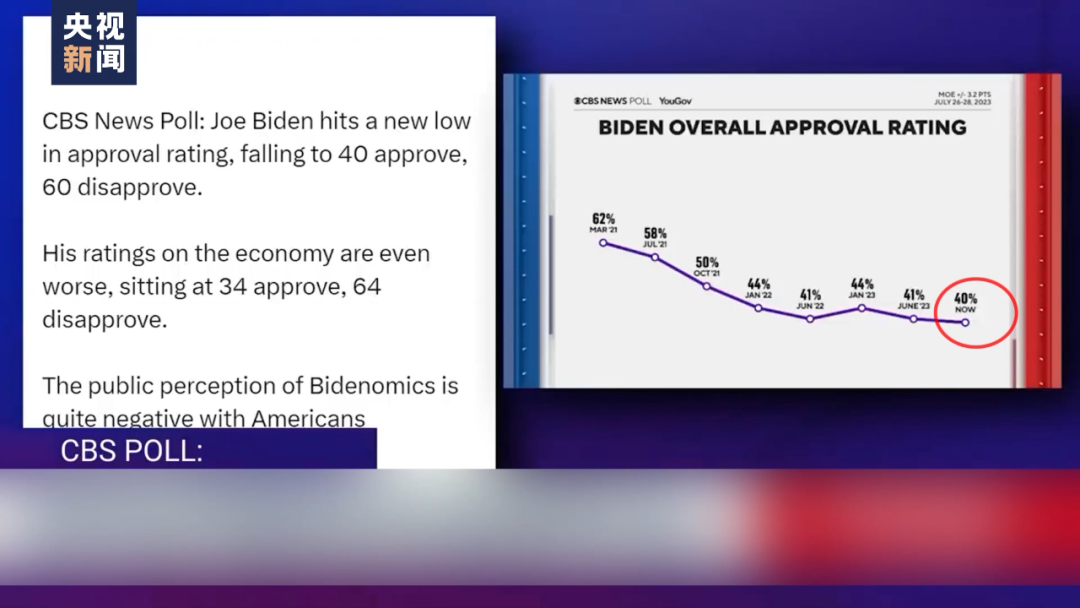 根據(jù)美國哥倫比亞廣播公司7月30日公布的一項(xiàng)最新民調(diào)結(jié)果,拜登的整體支持率僅為40%,而就經(jīng)濟(jì)方面,拜登的支持率僅有34%。在被問到“拜登經(jīng)濟(jì)學(xué)”時(shí),有50%的受訪者會(huì)想到“通貨膨脹不斷上漲”,49%的受訪者會(huì)想到“加稅”。有專家認(rèn)為,美國經(jīng)濟(jì)將在今年年底前后陷入衰退。